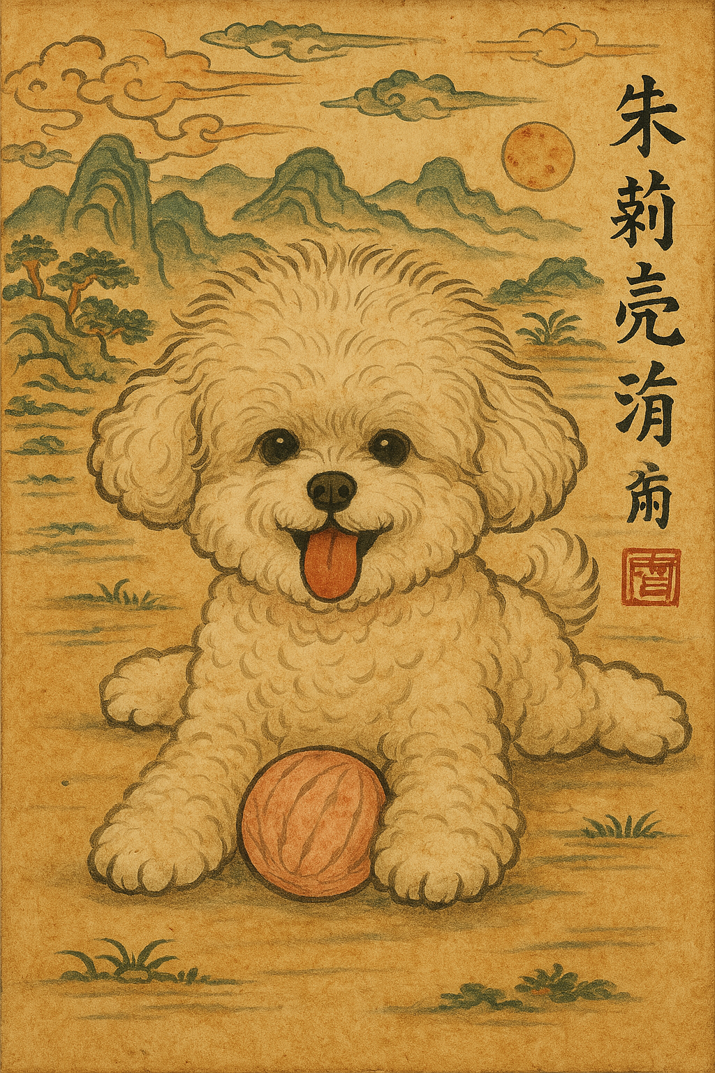 오늘은 다른 느낌의 사진을 만들어보고 싶어서 ChatGPT에게 조선시대 민화 스타일로 사진을 부탁해봤습니다.
