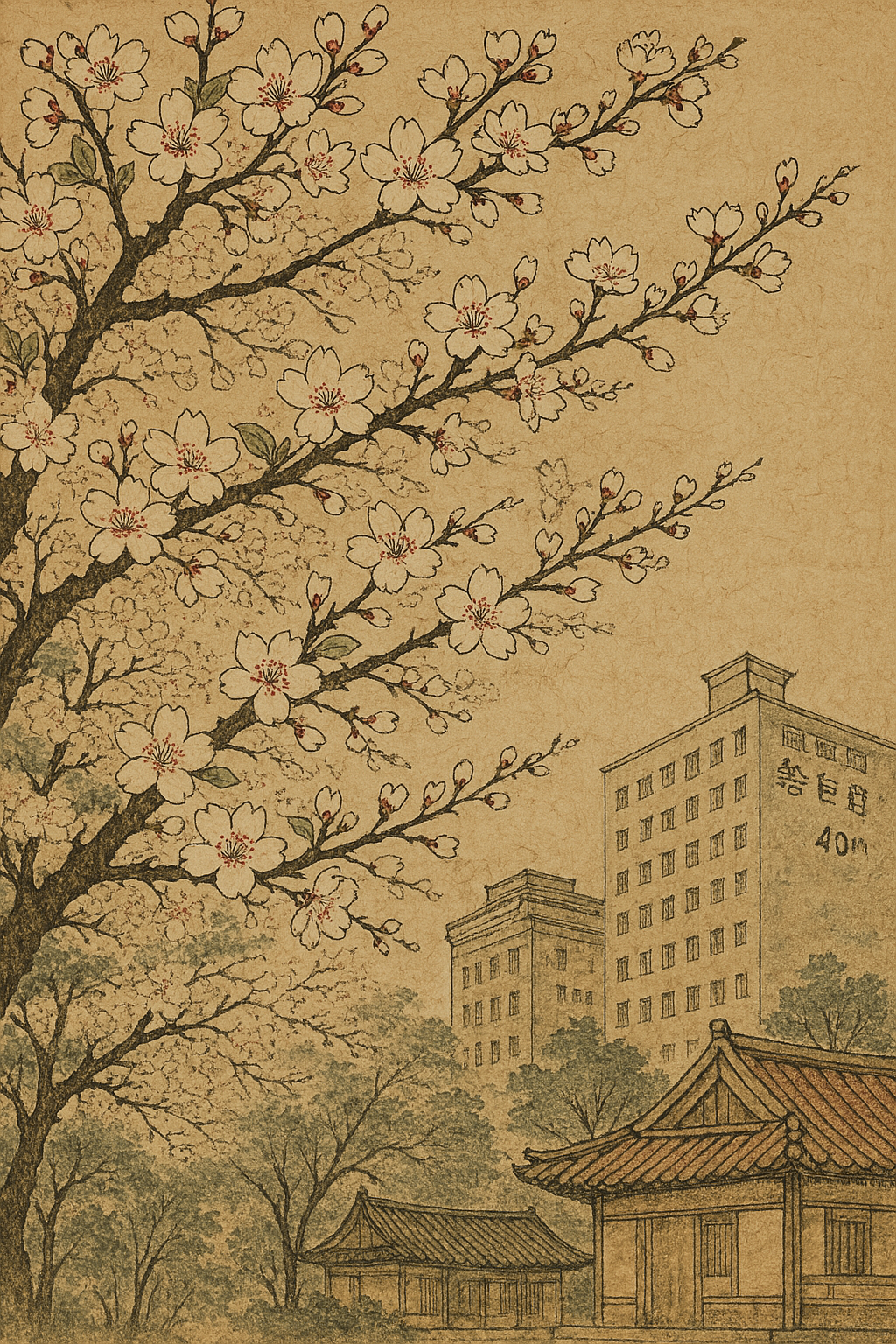 집 근처 벚꽃나무가 있어서 사진을 찍고 조선시대 민화 느낌으로 부탁했더니 이렇게 감성있는 사진이 완성됐습니다!