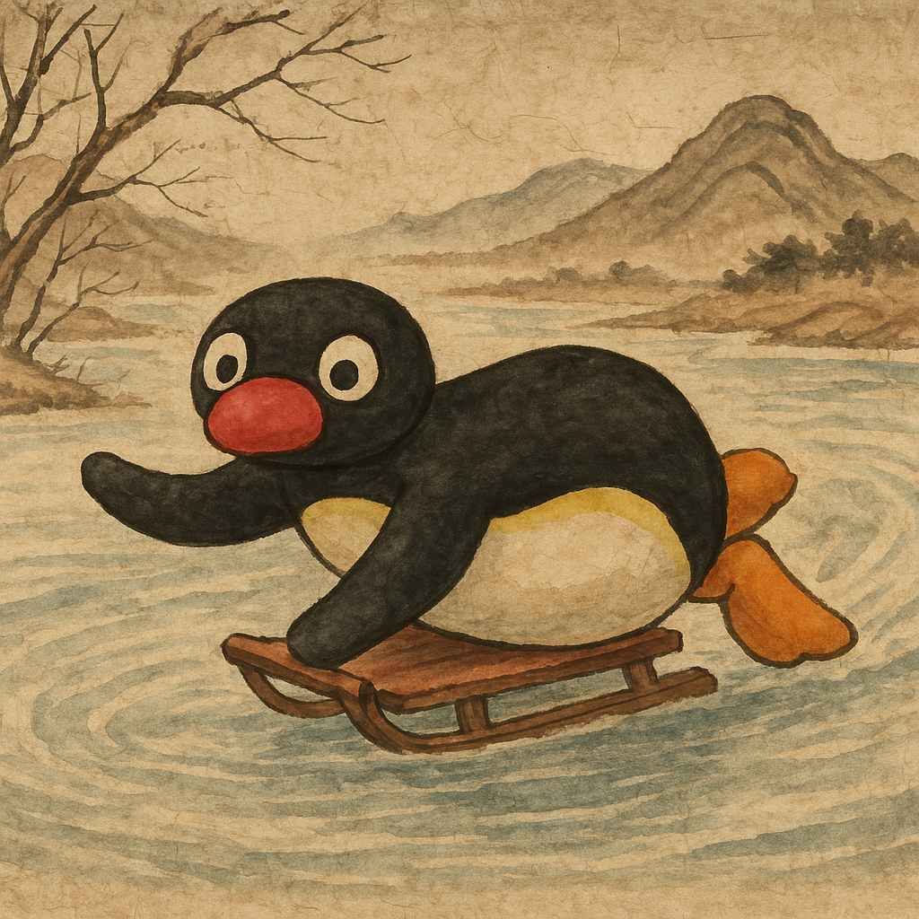 핑구 인형으로 만든 썰매타는 핑구입니다. 얼음에 미끄럼타고 놀던 핑구가 떠올라 썰매와 조합해봤습니다. 은근 잘 어울리지 않나요?ㅎㅎ